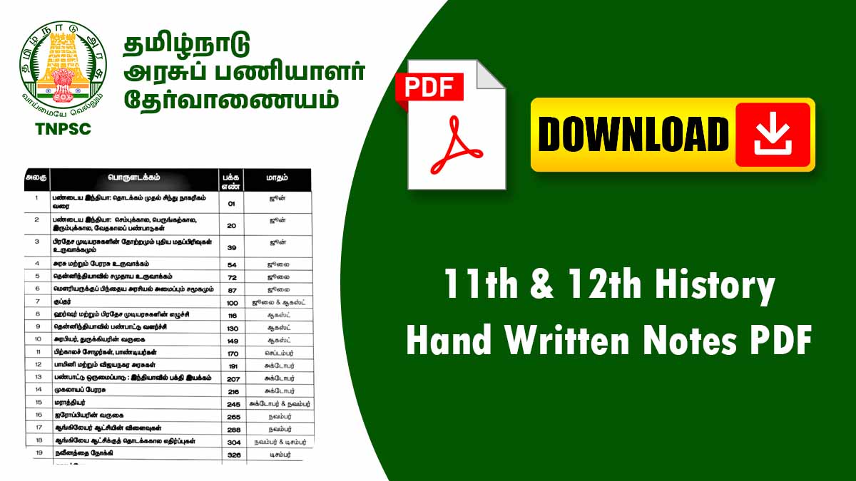 அதற்காகவே இங்கே 11th & 12th History Handwritten Notes PDF chapter-wise neat-ஆ, important points highlight செய்து கொடுக்கப்பட்டுள்ளது.