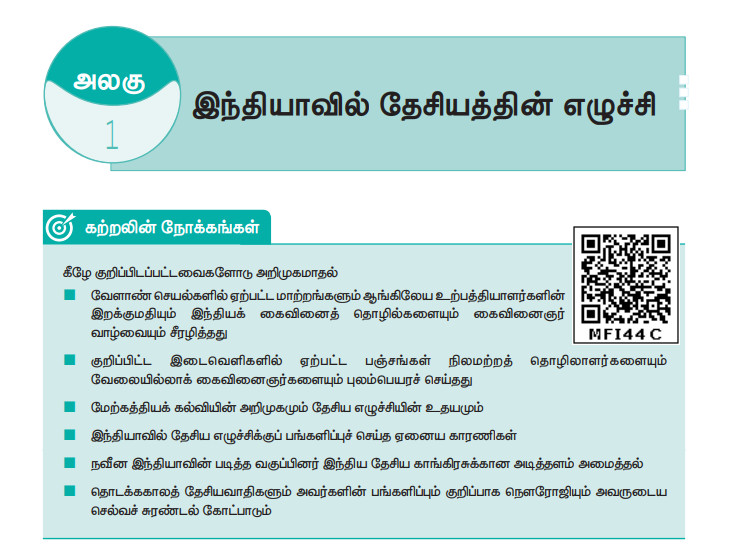 12th History – Lesson 1 – இந்தியாவில் தேசியத்தின் எழுச்சி – Tamil