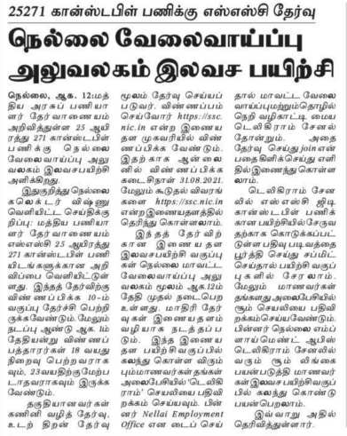 25271 கான்ஸ்டபிள் பணிக்கு எஸ்எஸ்சி தேர்வு – வேலைவாய்ப்பு அலுவலகம் இலவச பயிற்சி