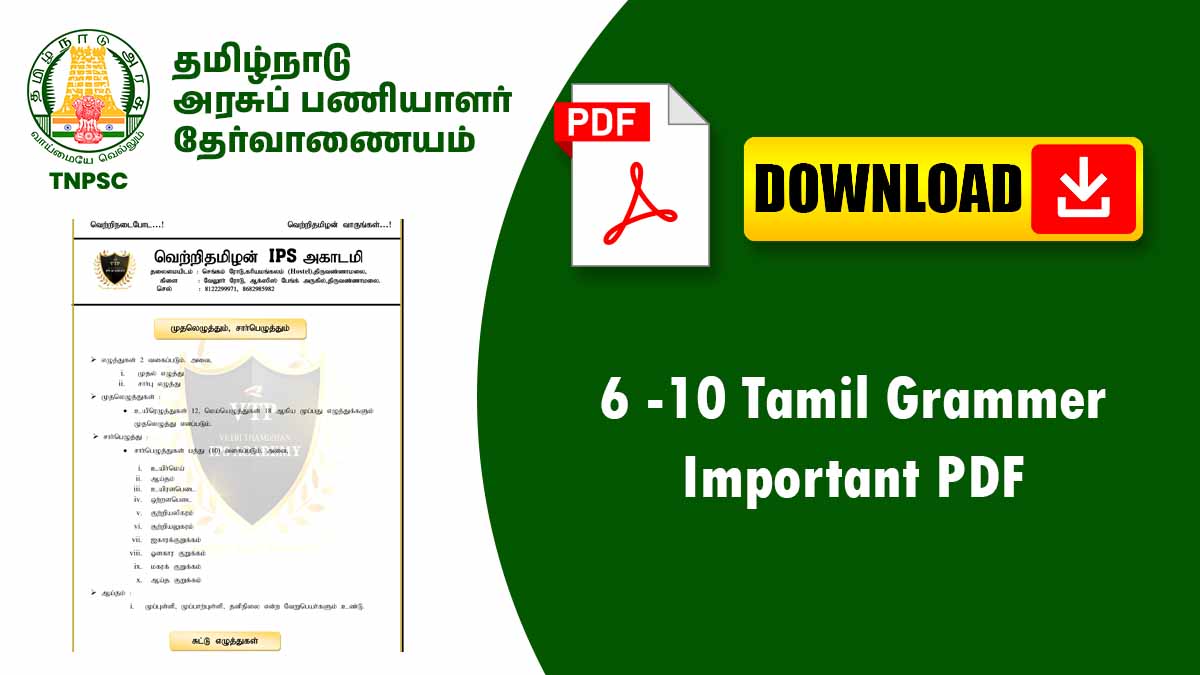 இந்த 6th to 10th Tamil Grammar Notes PDF மாணவர்களுக்கும் TNPSC தேர்வர்களுக்கும் ஒரு அடிப்படை முதல் மேம்பட்ட இலக்கண வழிகாட்டி.