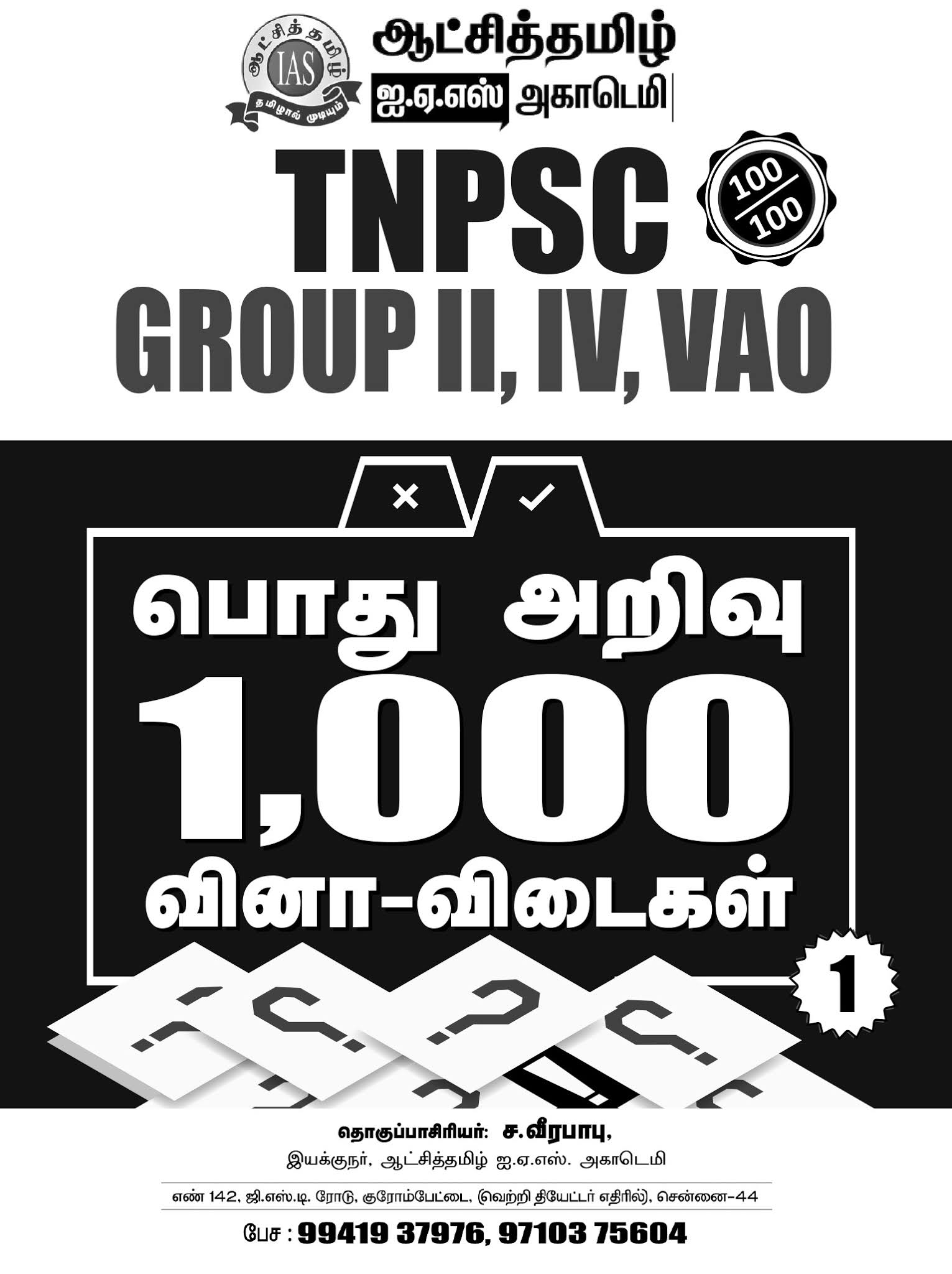 Aatchi Tamil IAS Academy – TNPSC Group II, IV, VAO – பொது அறிவு 1000 வினா விடைகள்