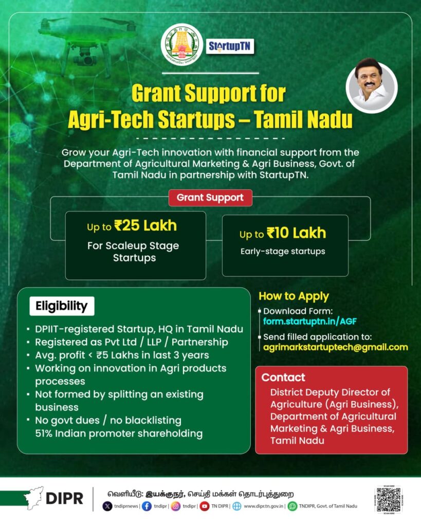 🚀 தமிழ்நாட்டில் Agri-Tech Startup தொடங்கியவர்களுக்கு மாபெரும் வாய்ப்பு!