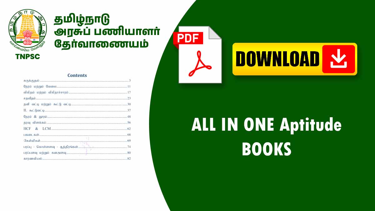 TNPSC, SSC, RRB, Banking, Campus Placement போன்ற எந்த competitive exam ஆனாலும் Aptitude தான் success-க்கு முக்கியமான key. அதனால்தான் இங்கே ALL-IN-ONE Aptitude Books (PDF) வடிவில் Quantitative, Reasoning, Data Interpretation, Puzzles, Shortcut Methods அனைத்தும் ஒரே இடத்தில் தொகுத்து கொடுக்கப்பட்டுள்ளது.