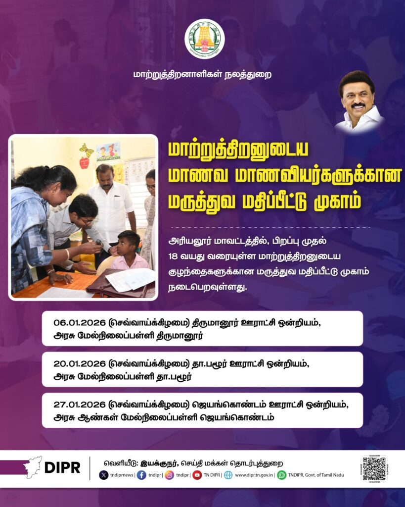 👉 மருத்துவ மதிப்பீட்டு முகாம் நடத்தப்பட உள்ளது.
