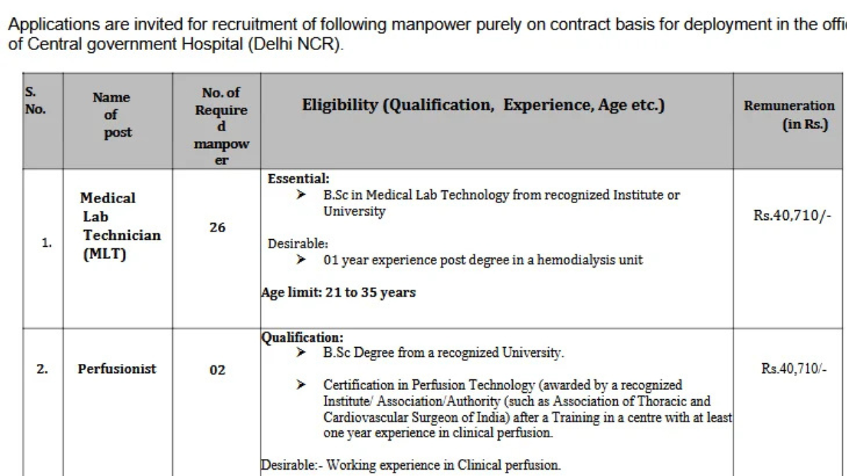 - Perfusionist: அதிகபட்சம் 40 வயது