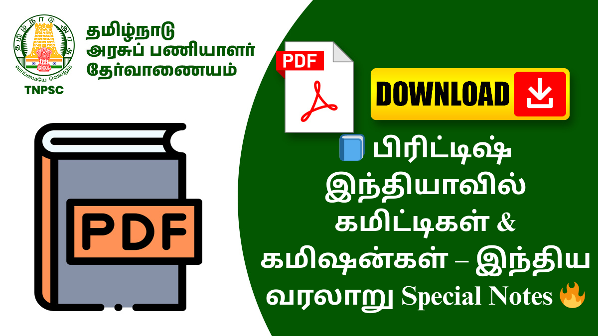 👉 இந்த British India Committees & Commissions PDF-ஐ டவுன்லோடு செய்து, இந்திய வரலாறு பகுதியில் உங்கள் மதிப்பெண்களை அதிகரிக்க தயாராகுங்கள்! 🚀📘