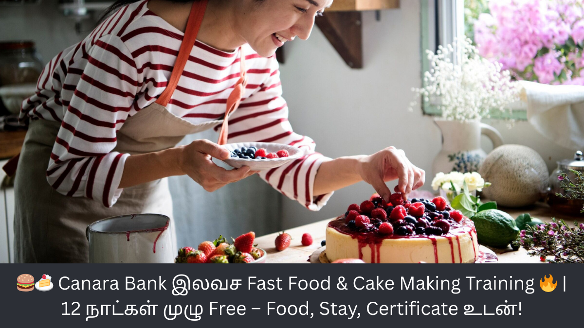 👉 12 நாட்கள் இலவச Fast Food & Cake Making Training-ஐ அறிவித்துள்ளது.