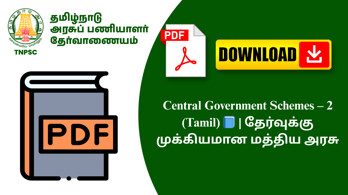 👉 Government Schemes questions-ல் full confidence பெற இந்த Central Government Schemes – 2 (Tamil) PDF-யை இப்போதே படிக்க தொடங்குங்கள்! 📚💪