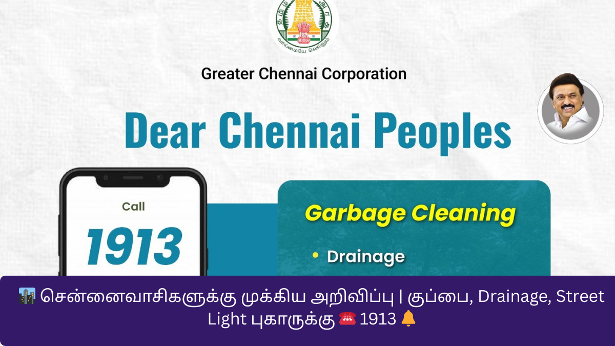 ✨ “சுத்தமான, பாதுகாப்பான, சிறந்த சென்னையை உருவாக்க ஒன்றிணைவோம்”