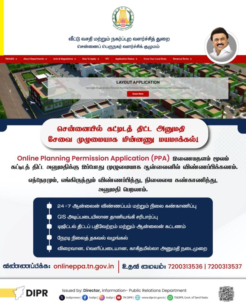 இதன் மூலம் Online Planning Permission Application (PPA) இணையதளம் வழியாக,