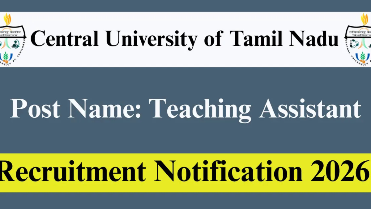 Central University of Tamil Nadu (CUTN), Thiruvarur தற்போது Teaching Assistant பணியிடங்களுக்கு புதிய வேலைவாய்ப்பு அறிவிப்பை வெளியிட்டுள்ளது.