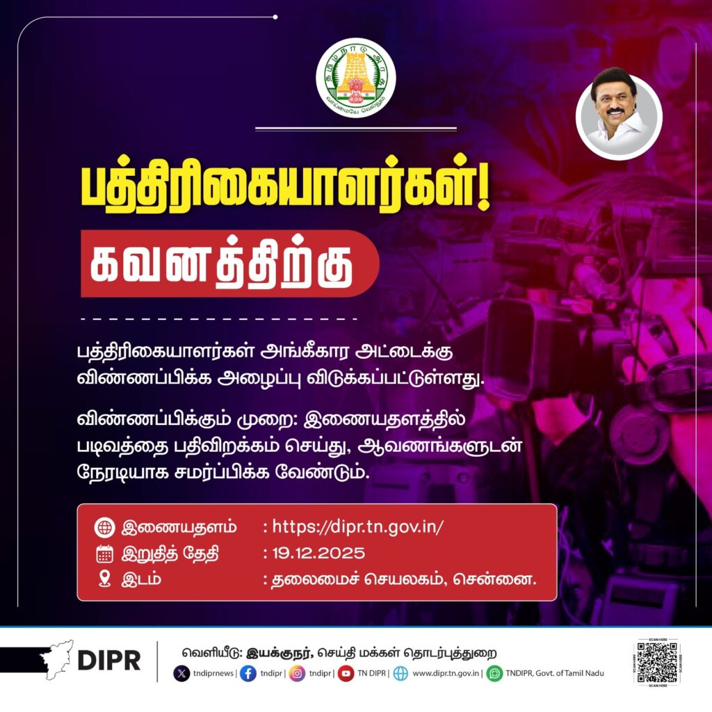 HomeNewslatest news📰 பத்திரிகையாளர்கள் அங்கீகாரம் 2025 | DIPR Accreditation Online Apply – முக்கிய அறிவிப்பு...