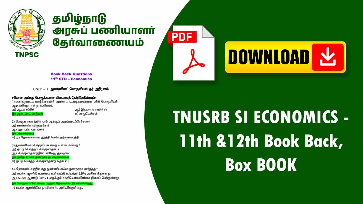 TNUSRB SI (Taluk, Station, Fingerprint, Communication), TNPSC Group Exams, and TN Board Public Exams — எல்லா தேர்வுகளுக்கும் Economics Book Back Questions மிக முக்கியம். Concepts + definitions + diagrams + real-life examples அடங்கிய economics chapters school books-ல் neat-ஆ கொடுக்கப்பட்டிருப்பதால், book back (BOX BOOK) answers exam preparationக்கு perfect base material.