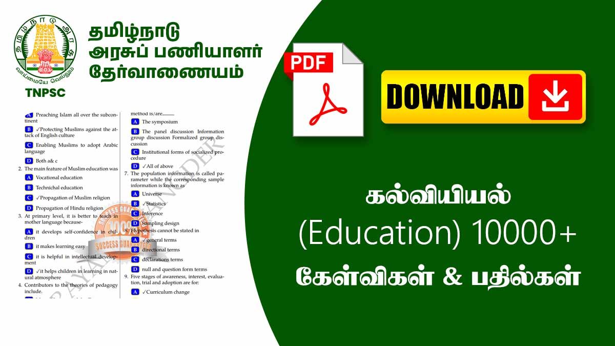 👉 இந்த 10000+ கேள்விகள் மூலம், முக்கியமான தலைப்புகள், ஆசிரியர் கோட்பாடுகள், கல்வி உளவியல் மற்றும் மதிப்பீட்டு முறைகள் பற்றிய புரிதல் அதிகரிக்கும்.