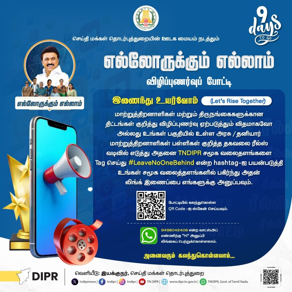 #LeaveNoOneBehind - 📣 உங்கள் வீடியோவில் TN DIPR சமூக வலைதளங்களை Tag செய்து பதிவிட வேண்டும்