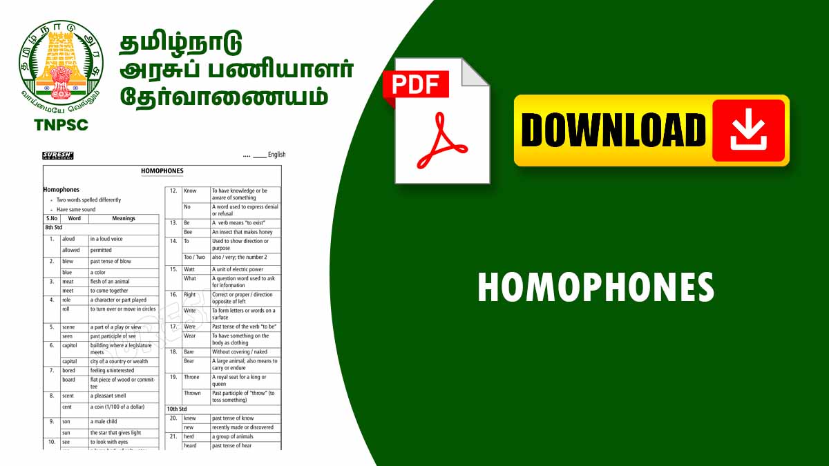 இந்த Homophones List (Tamil + English) பதிவு உங்கள் English Grammar & Vocabulary preparation-க்கு மிக முக்கியமானது.