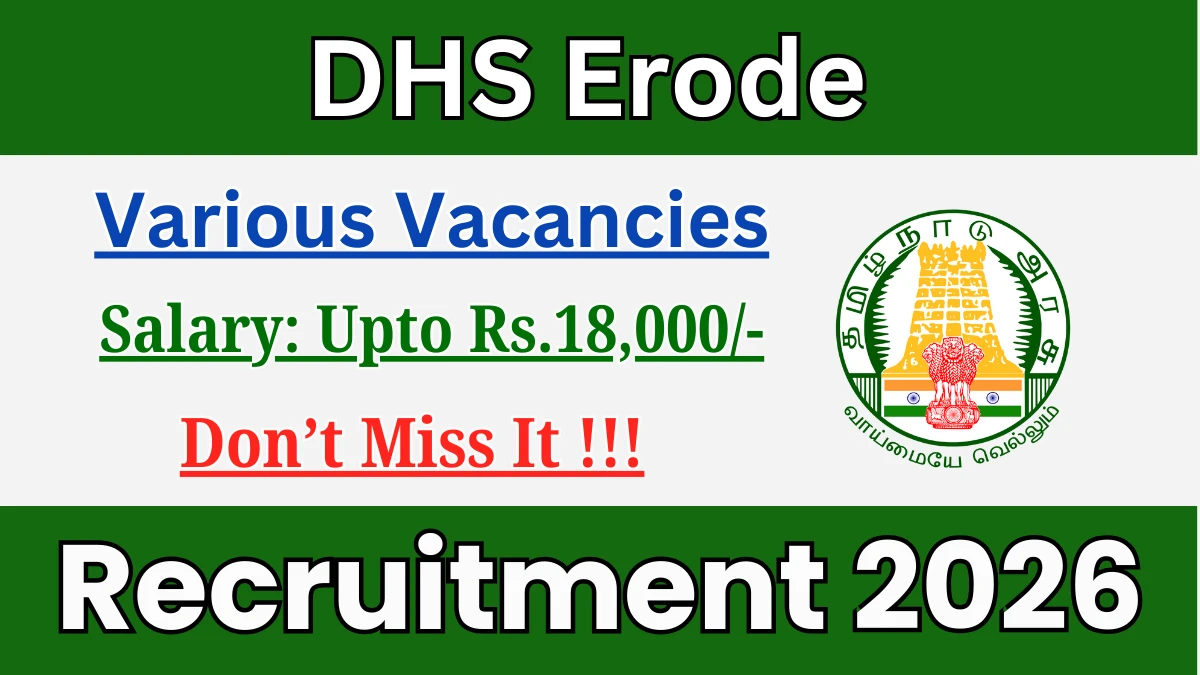 ஈரோடு மாவட்டத்தில் செயல்பட்டு வரும் District Health Society (Erode DHS) சார்பில் Recruitment 2026 அறிவிப்பு வெளியிடப்பட்டுள்ளது.