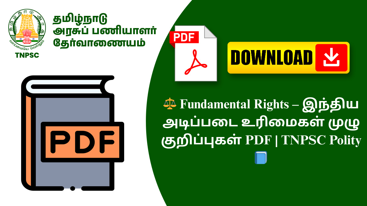 📥 இப்போது Fundamental Rights PDF-ஐ பதிவிறக்கம் செய்து உங்கள் Polity தயாரிப்பை வலுப்படுத்துங்கள்! 🚀