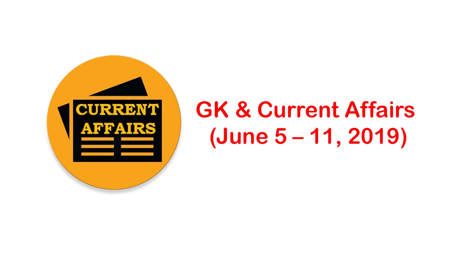 GK & Current Affairs (June 5 – 11, 2019)