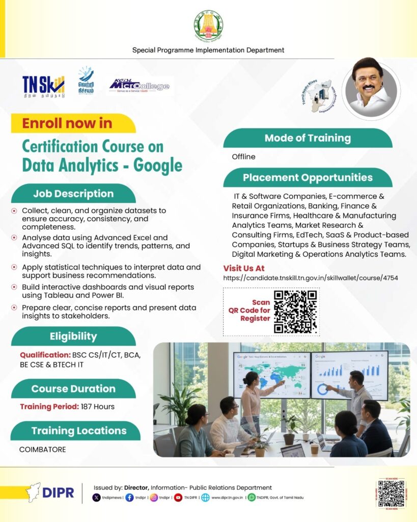 இளைஞர்களுக்காக Certification Course on Data Analytics – Google அறிவிக்கப்பட்டுள்ளது.