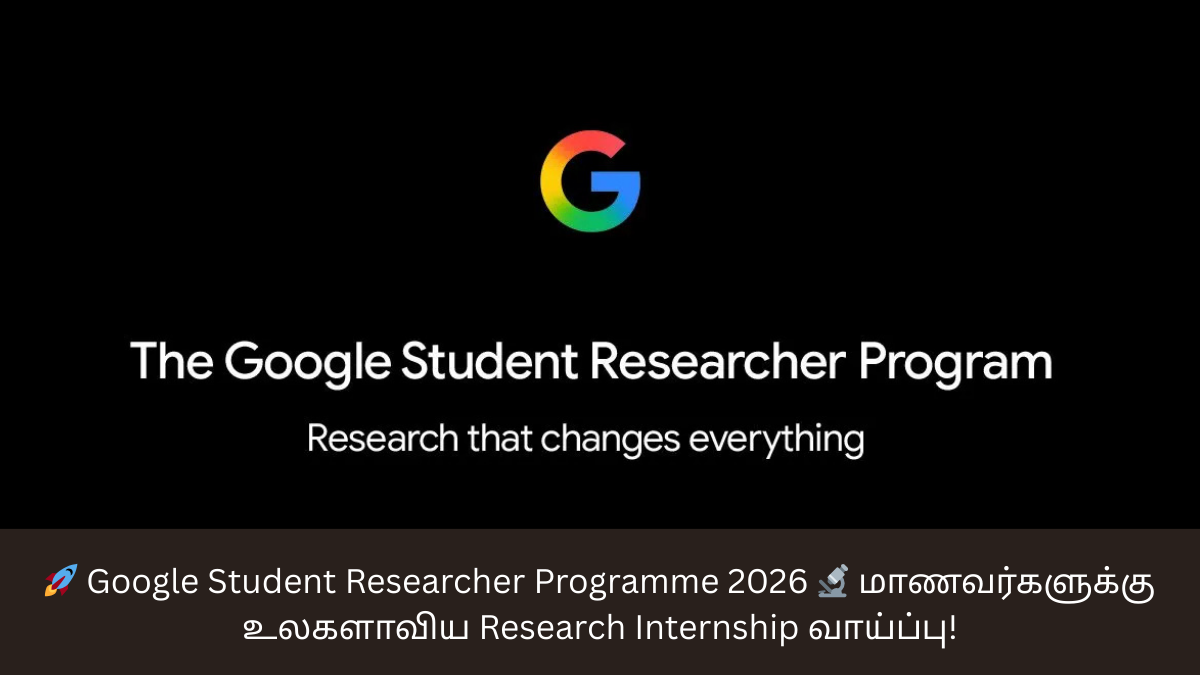 உலகின் முன்னணி தொழில்நுட்ப நிறுவனமான Google, 2026-ஆம் ஆண்டிற்கான தனது Student Researcher Programme 2026 பயிற்சித் திட்டத்திற்கான அதிகாரப்பூர்வ அறிவிப்பை வெளியிட்டுள்ளது.