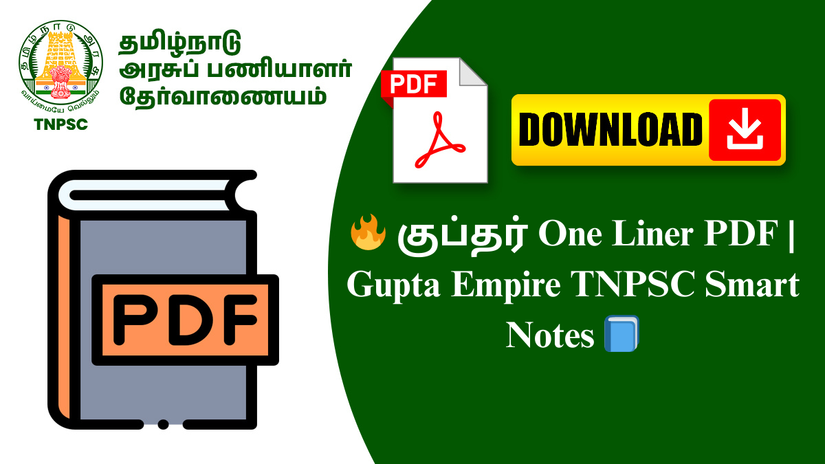 TNPSC Group 4, Group 2, Group 2A, VAO, Junior Assistant, TET, SSC, RRB போன்ற தேர்வுகளுக்கு தயாராகும் aspirants-க்கு இது ஒரு high-scoring Ancient History revision PDF ஆக இருக்கும். குறிப்பாக Gupta Period chapter-ல் score அதிகரிக்க விரும்பும் மாணவர்களுக்கு இது மிகவும் பயனுள்ளதாக இருக்கும்.