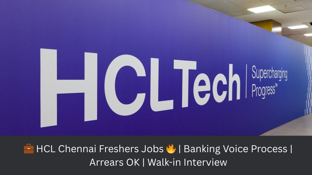 சென்னையில் செயல்பட்டு வரும் முன்னணி ஐடி நிறுவனமான HCL Technologies நிறுவனத்தில் Freshers-களுக்கான Banking Domain – Voice Process பணிக்கு புதிய வேலைவாய்ப்பு அறிவிப்பு வெளியாகியுள்ளது.