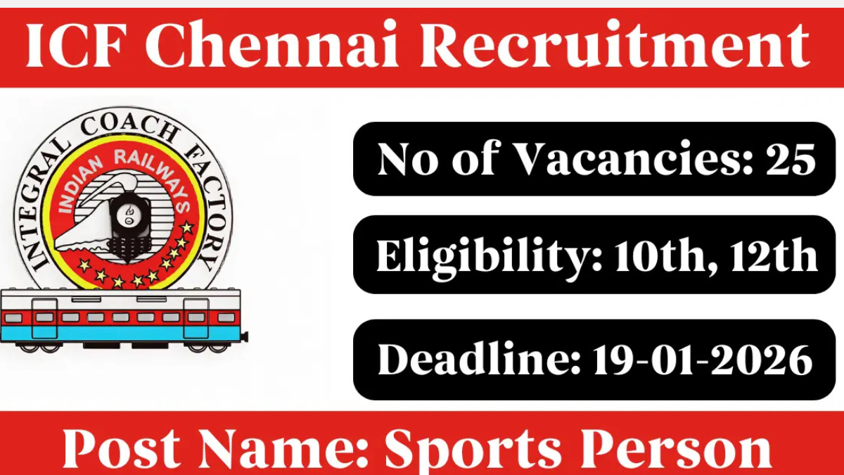 சென்னையில் செயல்பட்டு வரும் Integral Coach Factory (ICF) நிறுவனத்தில் இருந்து Sports Person Recruitment 2026 குறித்த புதிய வேலைவாய்ப்பு அறிவிப்பு வெளியாகியுள்ளது.