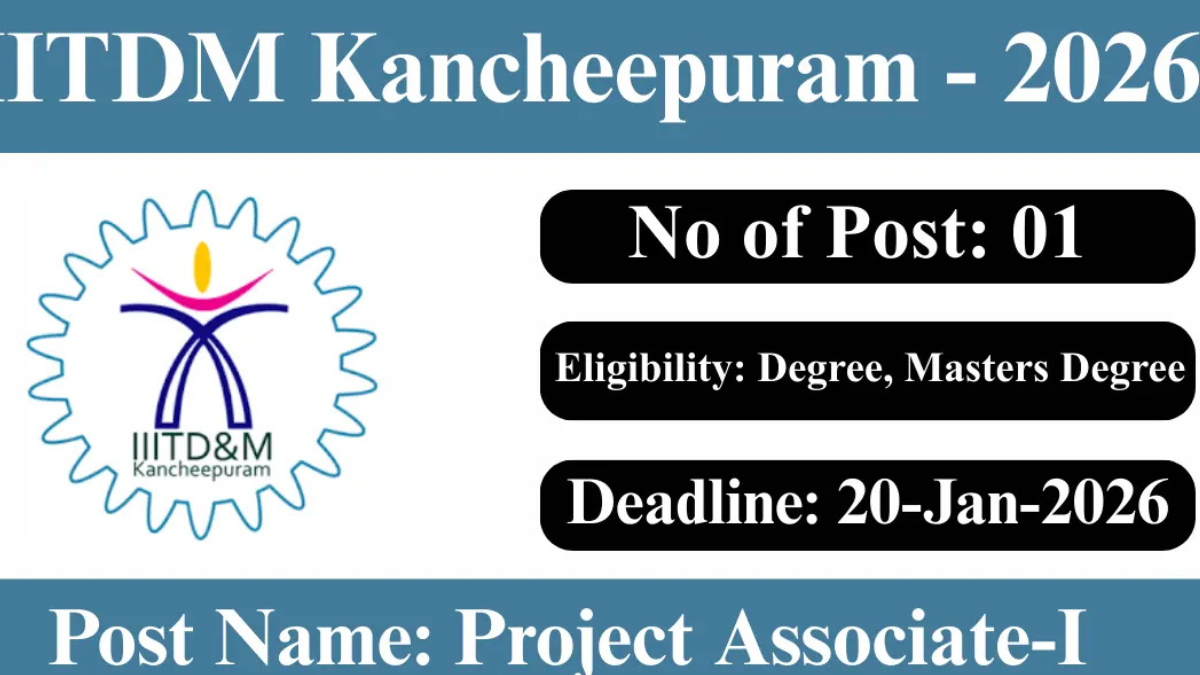 Indian Institute of Information Technology Design and Manufacturing, Kancheepuram (IIITDM காஞ்சிபுரம்) சார்பில் Project Associate-I பணிக்கான புதிய வேலைவாய்ப்பு அறிவிப்பு வெளியிடப்பட்டுள்ளது. சென்னை (காஞ்சிபுரம் வளாகம்) பணியிடமாக மொத்தம் 1 காலியிடம் அறிவிக்கப்பட்டுள்ளது. தகுதியானவர்கள் Online முறையில் விண்ணப்பிக்கலாம்.