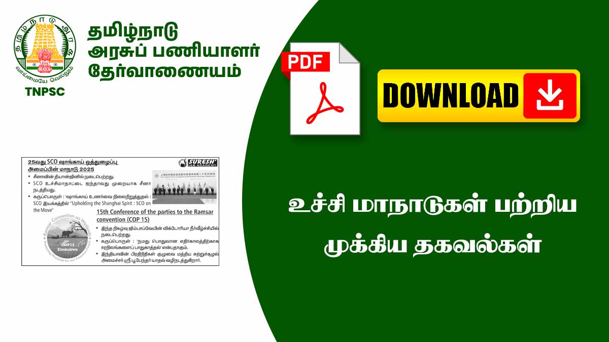 TNPSC, SSC, UPSC போன்ற போட்டித் தேர்வுகளில் இந்த உச்சி மாநாடுகள் பற்றிய கேள்விகள் அடிக்கடி கேட்கப்படுகின்றன.