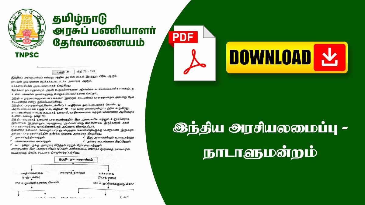 роЗроирпНродро┐роп роЕро░роЪро┐ропро▓роорпИрокрпНрокро┐ройрпН роорпБроХрпНроХро┐роп роЕроЩрпНроХрооро╛роХ ро╡ро┐ро│роЩрпНроХрпБроорпН роиро╛роЯро╛ро│рооройрпНро▒роорпН (Parliament) рокро▒рпНро▒ро┐ роЗроЩрпНроХрпЗ роОро│ро┐роп родрооро┐ро┤ро┐ро▓рпН роорпБро┤рпБроорпИропро╛рой роХрпБро▒ро┐рокрпНрокрпБроХро│рпН роХрпКроЯрпБроХрпНроХрокрпНрокроЯрпНроЯрпБро│рпНро│рой. TNPSC, SSC, Railway, Police рокрпЛройрпНро▒ родрпЗро░рпНро╡рпБроХро│рпБроХрпНроХрпБ рооро┐роХ роорпБроХрпНроХро┐ропрооро╛рой рокро╛роЯрооро╛роХ роЗродрпБ роХро░рпБродрокрпНрокроЯрпБроХро┐ро▒родрпБ.