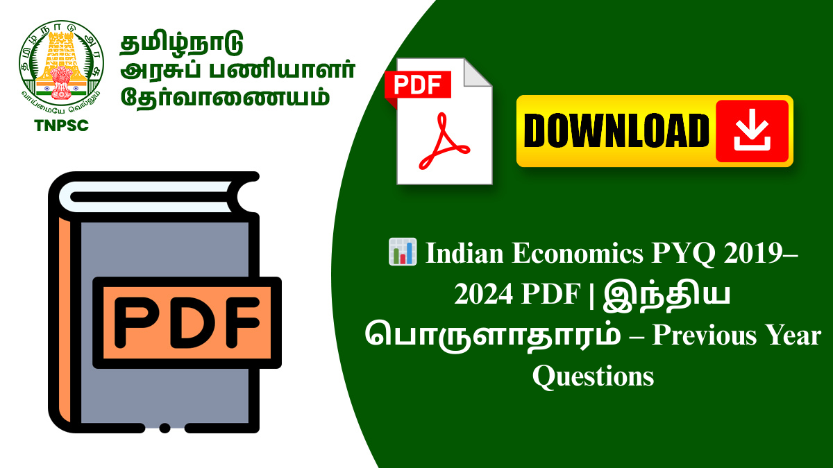 роЗроирпНрод Indian Economics PYQ 2019тАУ2024 PDF родрпКроХрпБрокрпНрокро┐ро▓рпН роХроЯроирпНрод роЖрогрпНроЯрпБроХро│ро┐ро▓рпН роироЯрпИрокрпЖро▒рпНро▒ TNPSC, TNUSRB, TRB, TET, SSC, RRB рокрпЛройрпНро▒ рокрпЛроЯрпНроЯро┐родрпН родрпЗро░рпНро╡рпБроХро│ро┐ро▓рпН роХрпЗроЯрпНроХрокрпНрокроЯрпНроЯ Previous Year Questions (PYQs) роЕройрпИродрпНродрпБроорпН exam-oriented роорпБро▒рпИропро┐ро▓рпН родрпКроХрпБроХрпНроХрокрпНрокроЯрпНроЯрпБро│рпНро│рой.