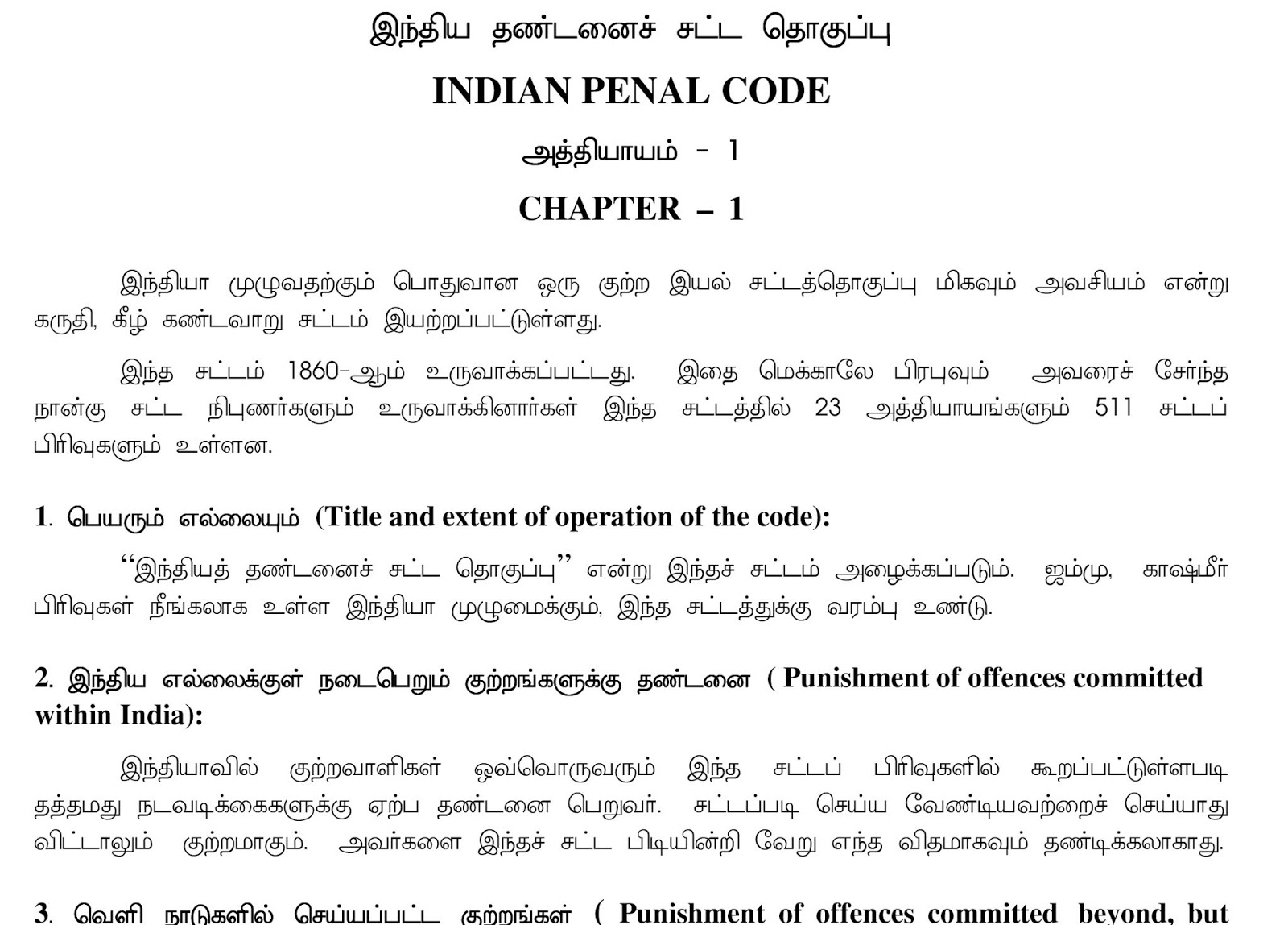 இந்திய தண்டனைச் சட்டம் தொகுப்பு (Indian Penal Code) PDF