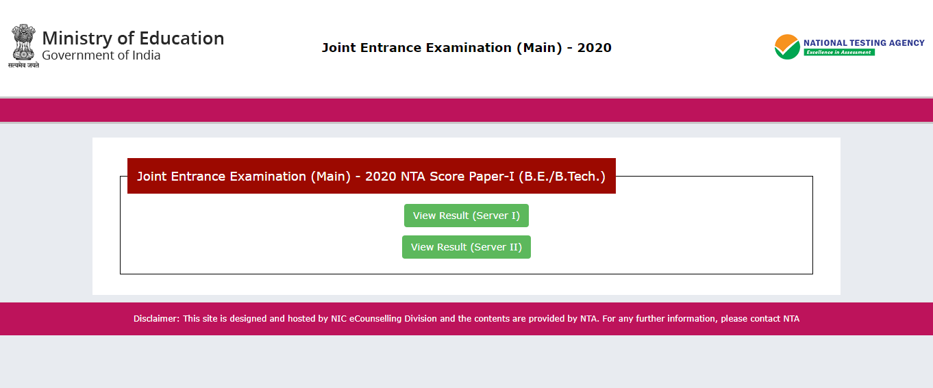 JEE Main Result 2020 (OUT)