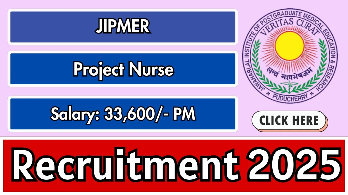 📢 JIPMER புதுச்சேரி வேலைவாய்ப்பு 2025 – புதுச்சேரியில் அமைந்துள்ள ஜவஹர்லால் இன்ஸ்டிட்யூட் ஆஃப் போஸ்ட் கிராஜுவேட் மெடிக்கல் எஜுக்கேஷன் & ரிசர்ச் (JIPMER) நிறுவனம் Project Nurse பணியிடத்திற்கான வேலைவாய்ப்பு அறிவிப்பை வெளியிட்டுள்ளது. மொத்தம் 1 காலியிடம் உள்ளது. தகுதியானவர்கள் மின்னஞ்சல் மூலம் விண்ணப்பிக்கலாம்.