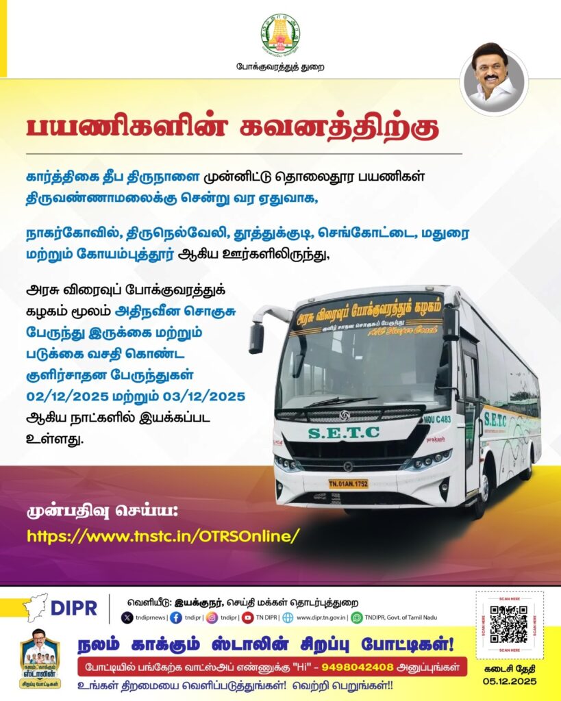 ЁЯФе роХро╛ро░рпНродрпНродро┐роХрпИ родрпАрокроорпН 2025 тАУ родро┐ро░рпБро╡рогрпНрогро╛рооро▓рпИ роЪрпЖро▓рпНро▓рпБроорпН рокропрогро┐роХро│рпБроХрпНроХрпБ роЪро┐ро▒рокрпНрокрпБ рокрпЗро░рпБроирпНродрпБроХро│рпН роЕро▒ро┐ро╡ро┐рокрпНрокрпБ!