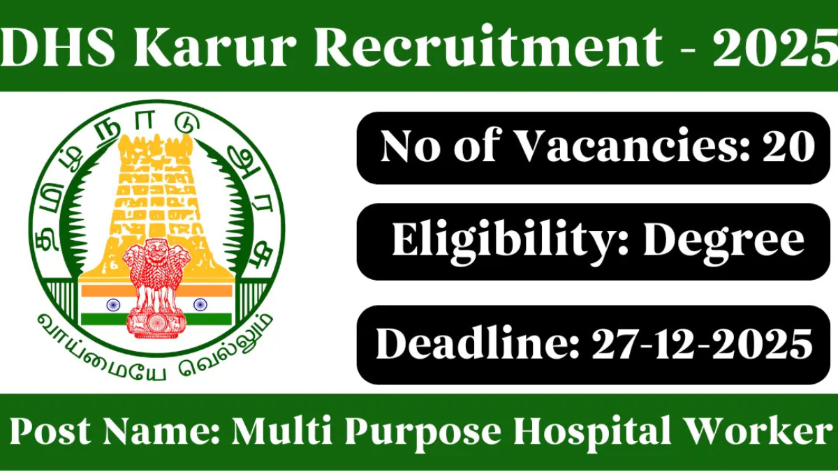 🏥 Karur DHS Recruitment 2025 🔔 | MTS, DEO, Lab Technician உள்ளிட்ட பணிகள் | 20 காலியிடங்கள்