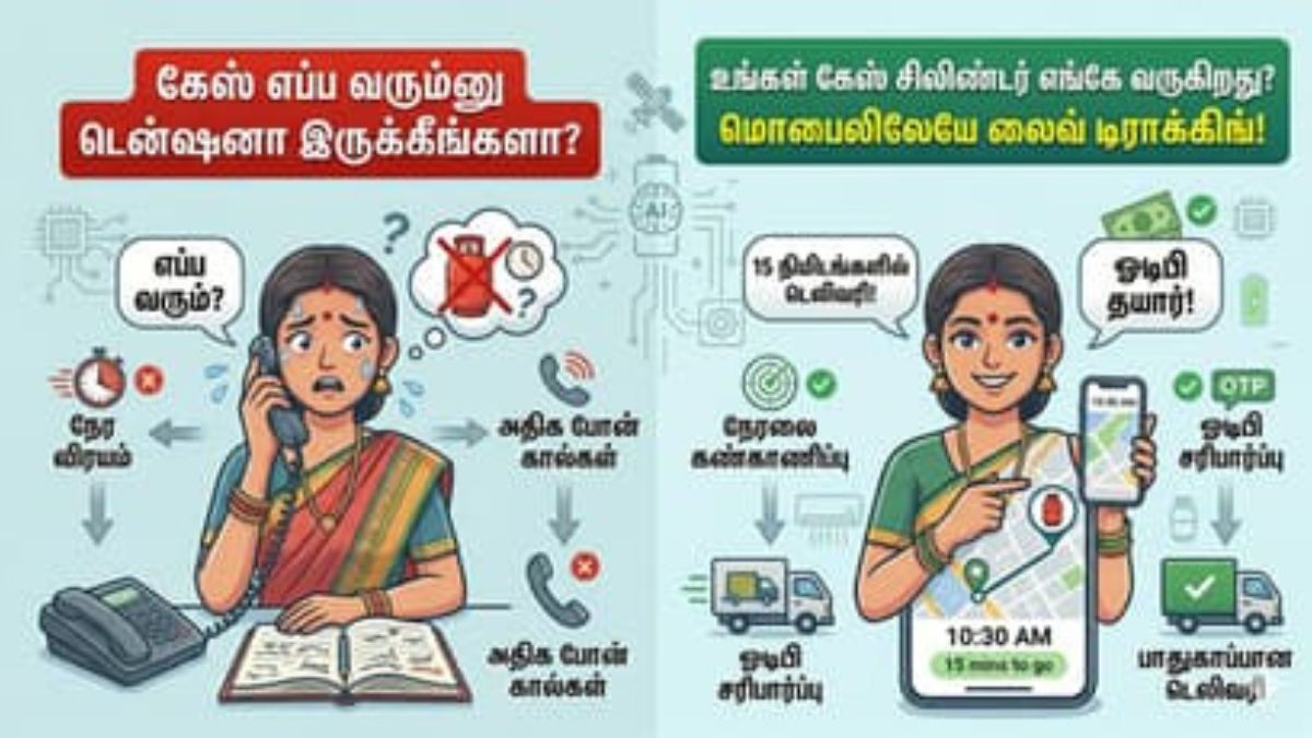 LPG சிலிண்டர் book பண்ணிய பிறகு, அது எப்போது வீட்டுக்கு வரும் என்று தெரியாமல் wait பண்ணுவது common. ஆனால் இப்போ technology மூலம் live tracking (real-time) செய்யலாம்!