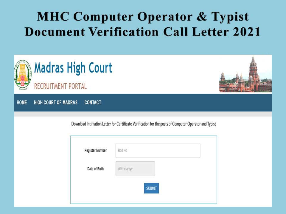 மெட்ராஸ் உயர் நீதிமன்றத்தில் இருந்து Computer Operator மற்றும் Typist பணியிடங்களை நிரப்ப கடந்த ஆண்டு வேலைவாய்ப்பு அறிவிப்பானது வெளியானது. இந்த பணிக்கு தேர்வுகள் அனைத்தும் முடிவடைந்து, அடுத்தகட்டமாக சான்றிதழ் சரிபார்ப்பு நடைபெற உள்ளதாக அறிவிக்கப்பட்டுள்ளது.