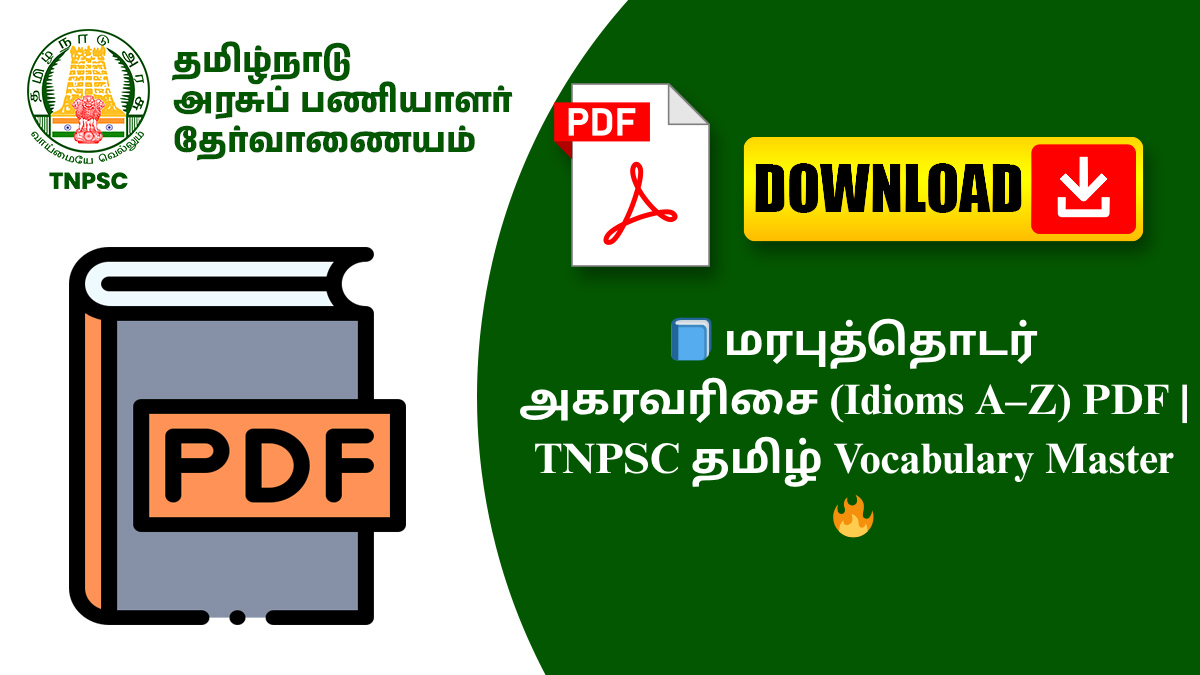👉 இந்த மரபுத்தொடர் அகரவரிசை PDF-ஐ Download செய்து உங்கள் தமிழ் தயாரிப்பை Next Levelக்கு கொண்டு செல்லுங்கள்! 🚀
