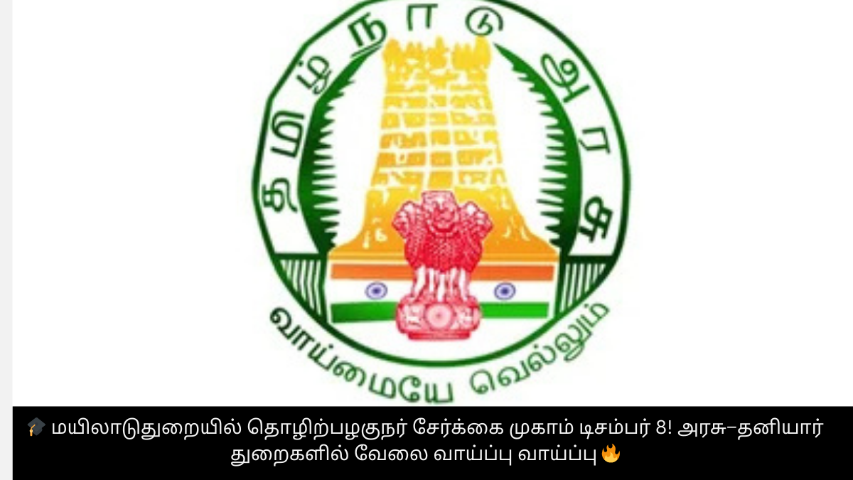 🎓 மயிலாடுதுறையில் தொழிற்பழகுநர் பயிற்சி சேர்க்கை முகாம் டிசம்பர் 8 – அரசு & தனியார் துறை வேலை வாய்ப்புகள்! 🔥