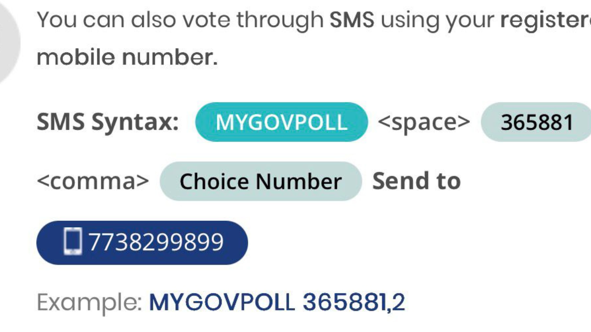 роородрпНродро┐роп роЕро░роЪро┐ройрпН MyGov Poll-ро▓рпН рокрпКродрпБроороХрпНроХро│рпН роОро│ро┐родро╛роХ рокроЩрпНроХрпЗро▒рпНроХ SMS роорпВро▓роорпН ро╡ро╛роХрпНроХро│ро┐роХрпНроХрпБроорпН ро╡роЪродро┐ ро╡ро┤роЩрпНроХрокрпНрокроЯрпНроЯрпБро│рпНро│родрпБ. роЗрогрпИроп ро╡роЪродро┐ роЗро▓рпНро▓ро╛родро╡ро░рпНроХро│рпБроорпН роХрпВроЯ, родроЩрпНроХро│рпБроЯрпИроп рокродро┐ро╡рпБ роЪрпЖропрпНропрокрпНрокроЯрпНроЯ роорпКрокрпИро▓рпН роОрогрпНрогрпИ рокропройрпНрокроЯрпБродрпНродро┐ роОро│ро┐родро╛роХ ро╡ро╛роХрпНроХро│ро┐роХрпНроХро▓ро╛роорпН.
