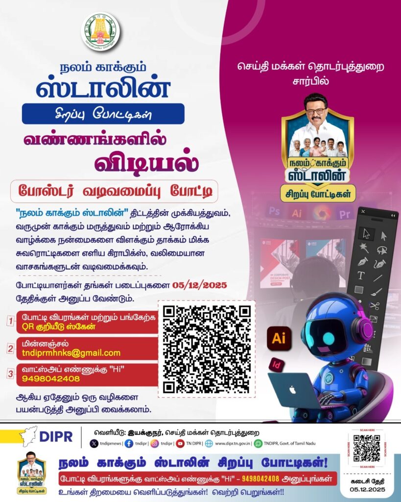 🎨 வண்ணங்களில் விடியல் – “நலம் காக்கும் ஸ்டாலின்” போஸ்டர் வடிவமைப்பு போட்டி அறிவிப்பு!