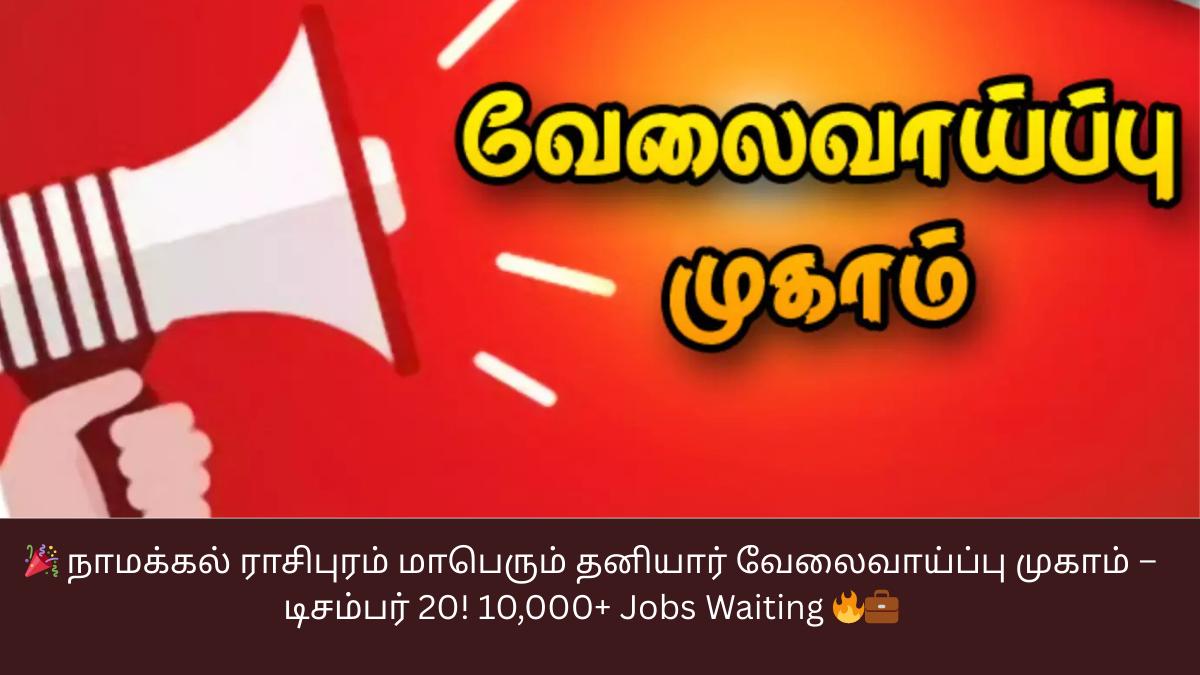 🚀 நாமக்கல் ராசிபுரம் மாபெரும் தனியார் வேலைவாய்ப்பு முகாம் – டிசம்பர் 20! ஆயிரக்கணக்கான வாய்ப்புகள் 💼🔥