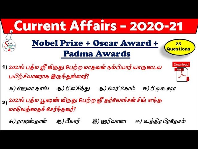 Nobel Prize, Oscar Award, and Padma Awards Winners – 2020 (Question and Answers)