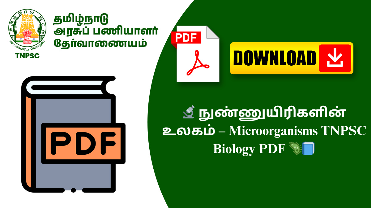 📥 Biology பகுதியில் முழு நம்பிக்கையுடன் எழுத நுண்ணுயிரிகளின் உலகம் PDF-ஐ இப்போது பதிவிறக்கம் செய்து உங்கள் தேர்வு தயாரிப்பை மேம்படுத்துங்கள்! 🌟