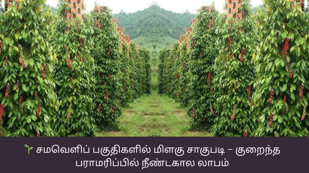 ро╡ро┐ро╡роЪро╛ропродрпН родрпКро┤ро┐ро▓рпНроирпБроЯрпНрок ро╡ро│ро░рпНроЪрпНроЪро┐ропро╛ро▓рпН, рооро┐ро│роХрпБ (Black Pepper) роЗройрпНро▒рпБ рооро▓рпИрокрпНрокроХрпБродро┐роХро│рпБроХрпНроХрпБ роороЯрпНроЯрпБрооро▓рпНро▓ро╛рооро▓рпН роЪрооро╡рпЖро│ро┐ рокроХрпБродро┐роХро│ро┐ро▓рпБроорпН ро╡рпЖро▒рпНро▒ро┐роХро░рооро╛роХ роЪро╛роХрпБрокроЯро┐ роЪрпЖропрпНропрокрпНрокроЯрпБроХро┐ро▒родрпБ.