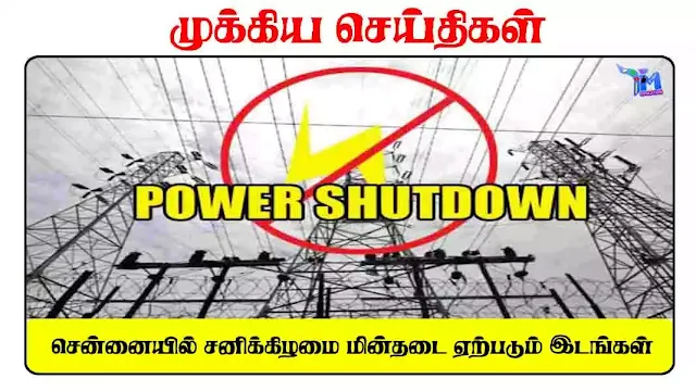 சென்னையில் 26.08.2023 அன்று காலை 9 மணி முதல் மதியம் 2 மணி வரை மின்வாரிய பராமரிப்பு பணி காரணமாக அண்ணாசாலை, ஆவடி பகுதிகளில் கீழ்காணும் இடங்களில் மின் விநியோகம் நிறுத்தப்படும். அதன் விவரம் பினவருமாறு:-