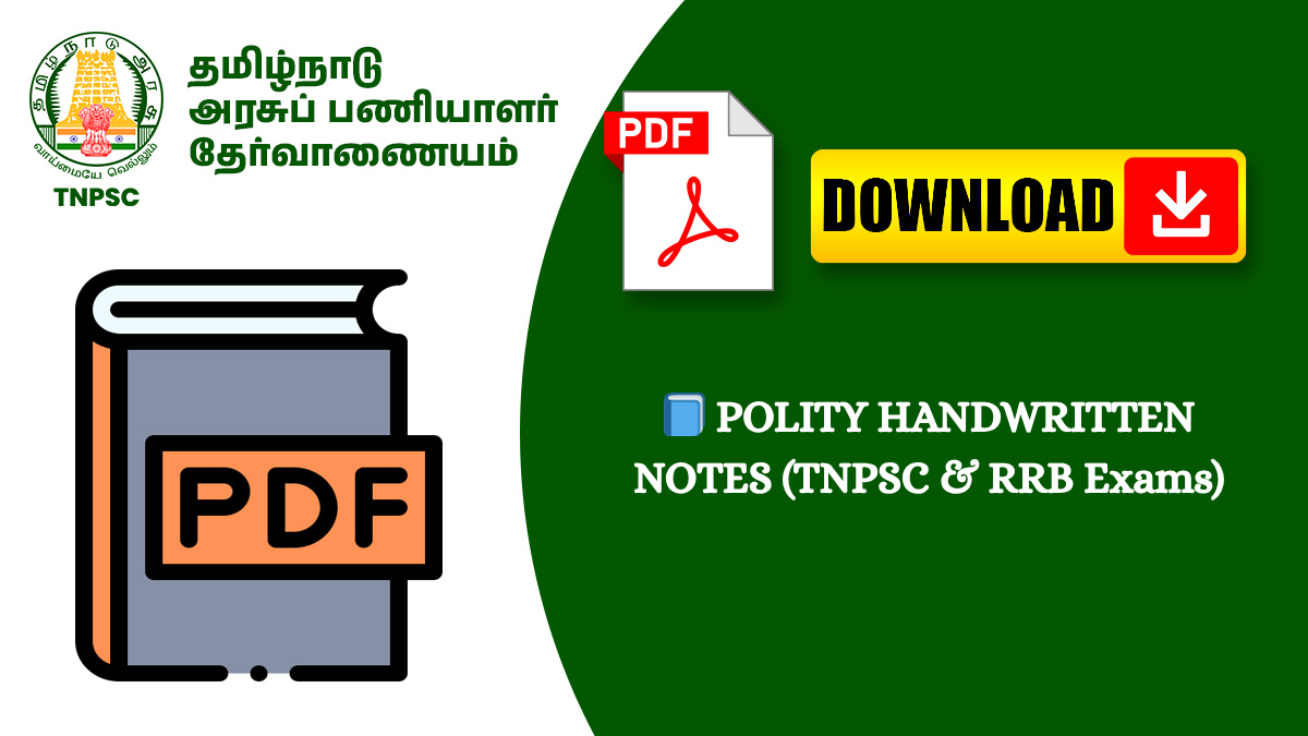 📘 POLITY HANDWRITTEN NOTES (TNPSC & RRB Exams) வழங்கப்பட்டுள்ளது.