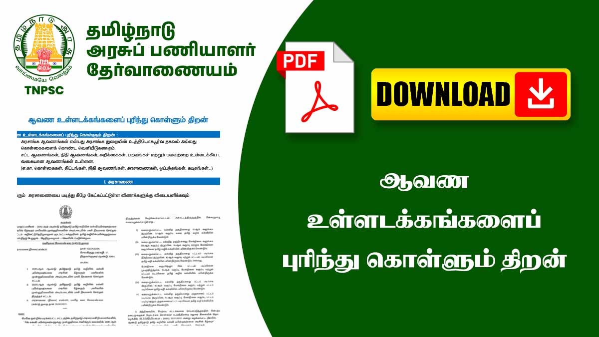 TNPSC மற்றும் பள்ளி அடிப்படையிலான போட்டித் தேர்வுகளில் “ஆவண உள்ளடக்கங்களைப் புரிந்துகொள்ளும் திறன்” எனும் பகுதி மிக முக்கியமானது.